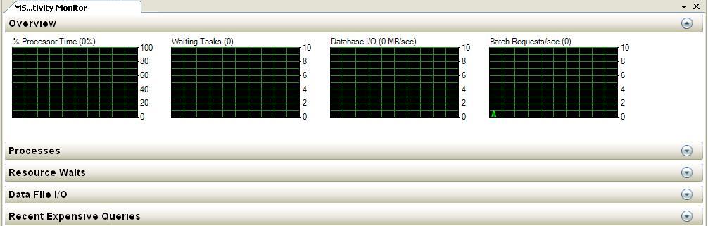 This feature is totally revamped in SSMS 2008. When opening “Activity Monitor” it shows a screen similar to the following image.